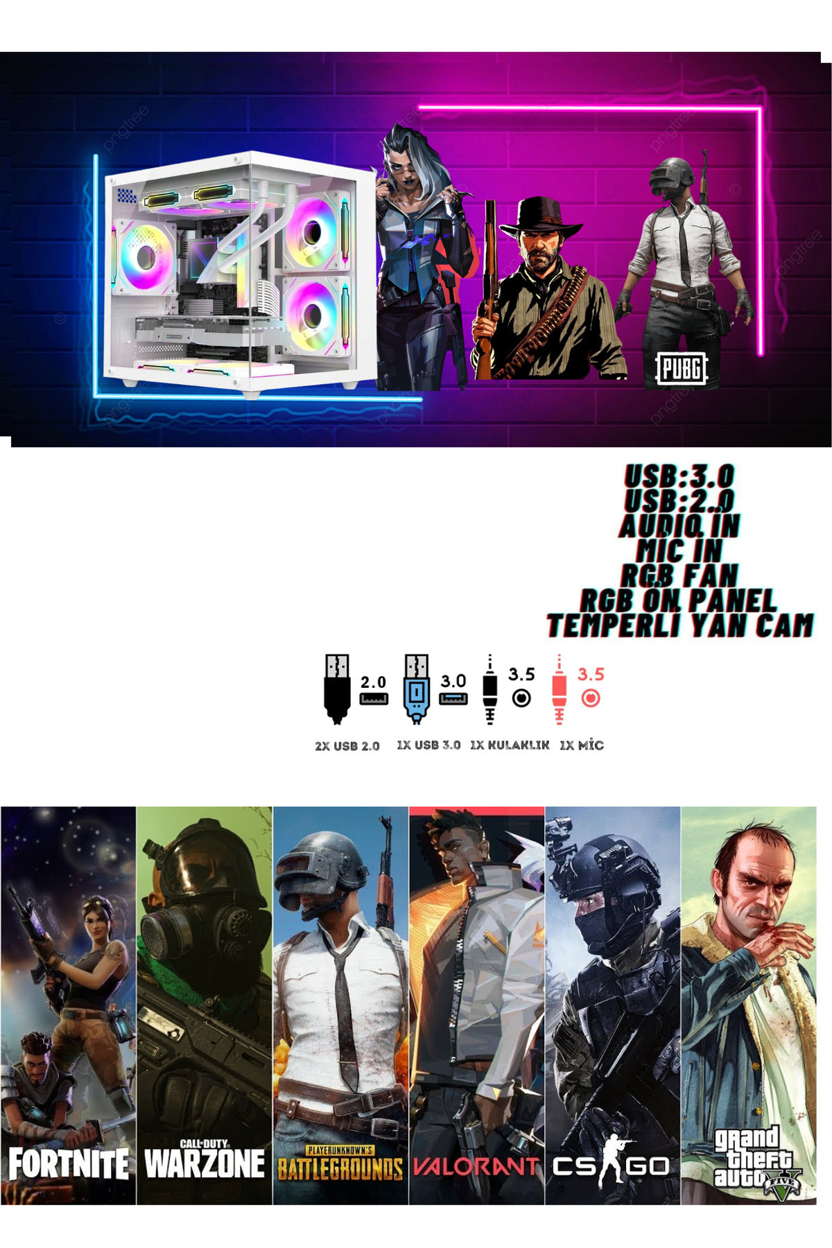RYZEN 5 7500F-RTX 5060 8 GB-240MM SIVI SOĞUTMA-32 GB RAM-500 GB M2 SSD